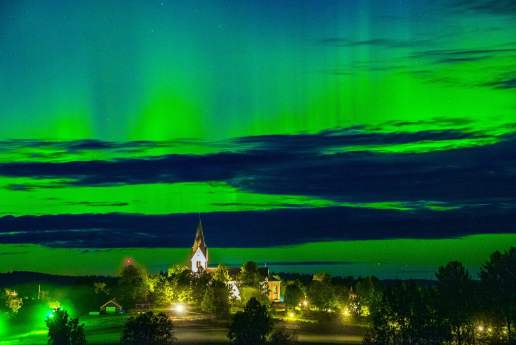 Detta beror nämligen på en ovanligt hög solaktivitet på grund av att solens nord- och sydpol byter plats med varandra. Det här inträffar ungefär var elfte år och i den förändringen uppstår explosioner på solens yta, vilket innebär att mängden partiklar som kastas mot jorden med hjälp av solvinden ökar. När de laddade partiklarna fångas upp av jordens magnetfält och krockar med atmosfärens atomer och molekyler uppstår ett ljusfenomen – det vi kallar för norrsken. “Draperiet” av färger vi kan se vid ett norrsken är magnetfältets linjer som blir synliga för oss. Effekten stiger för vart år som går och beräknas vara som högst år 2025 innan aktiviteten återigen sjunker.