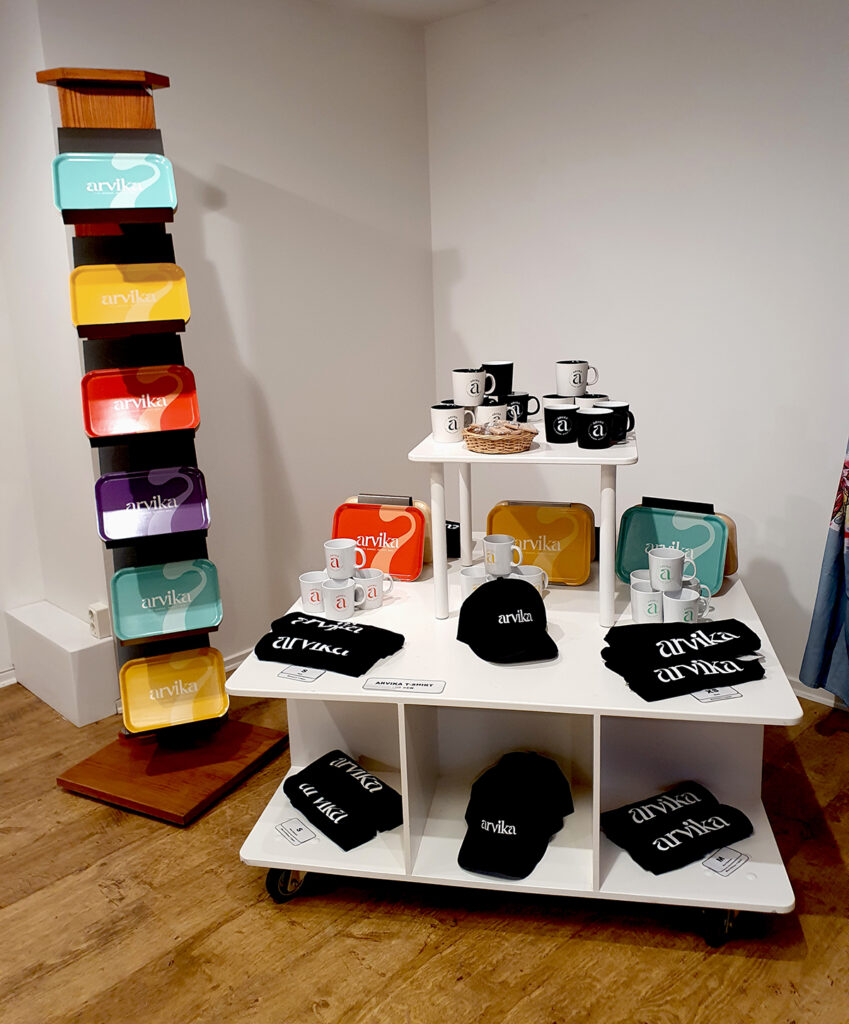 På Arvika Turistcenter hittar du ett urval av souvenirer som är typiska för Arvika och Sverige. Här finns bland annat produkter med Arvikas platsvarumärke, vykort med Arvikamotiv och typiska Sverige-souvenirer som magneter, nyckelringar, muggar och t-shirts.