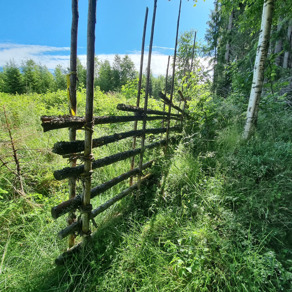 At the time of the Rackstad Colony artists, they liked to gather for festivities, both around Lake Racken and in Gylterud, Mangskog. Here lived among others the artist Alfred Ekstam and the architect Ludvid Mattsson, who grew up in Bjurbäcken, Mangskog. Mattsson kept a diary for many years and one of his depictions is about a walk from Rackstad to Gylterud, with a humorous touch. The stretch from Jössestugan to Agvattnet is part of the current Sotar Blixt Trail.