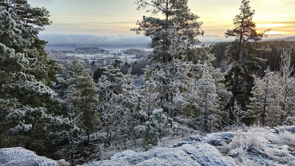 Vintern sveper in landskapet i tystnadens mjuka filt, med knarr under skorna och frosten som glittrar i träden.