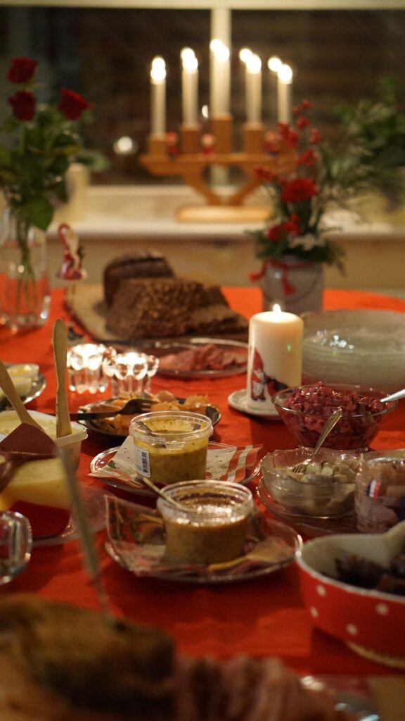 Julen är den svenska mathögtiden nummer ett! Mat och dryck är för många det som verkligen ger äkta julstämning. Det bakas lussekatter (saffransbröd), pepparkakor och pepparkakshus, struvor (ett slags friterat bakverk) och vörtbröd, det tillverkas julgodis som pepparmintskyssar, knäck och hemkokt kola, fisken lutas, köttbullar rullas och julskinkan kokas, risgrynsgröten puttrar på spisen och sist men inte minst lagas det Janssons frestelse – en slags potatisgratäng med ansjovis.