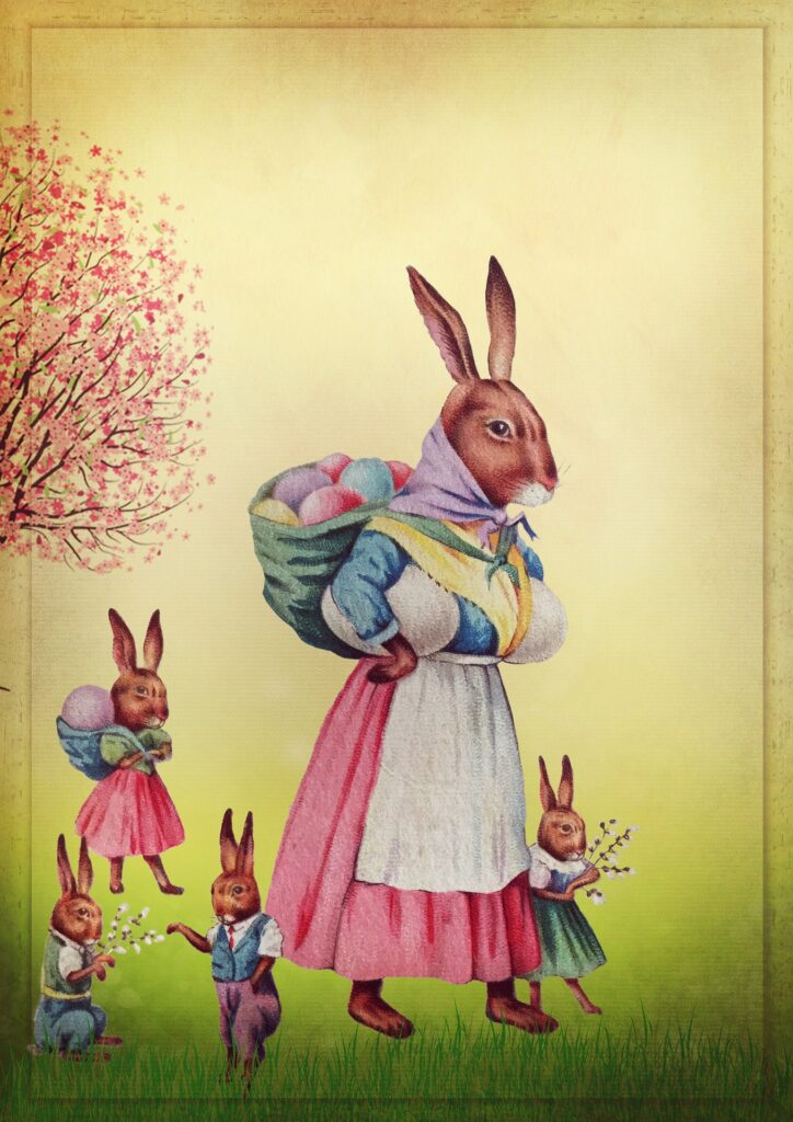 På 1850-talet lanserades påskharen och påskäggen på bred front i Tyskland av godis- och leksaksindustrin. Påskharen kom till oss på 1900-talet från Tyskland, men har inte riktigt fått fäste. Kycklingar, ägg, hönor, tuppar och påskkärringar är vanligare påskmotiv än haren.