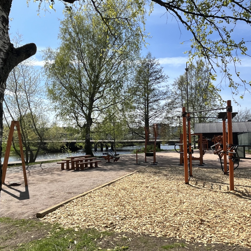 - Stadsparken, ligger mellan ån Varnan och brandstationen- 10 stationer där några är flexibla. Delar av gymmet är dessutom tillgänglighetsanpassat om du har rullstol och underlaget är av stenmjöl. Kvällstid är gymmet upplyst.