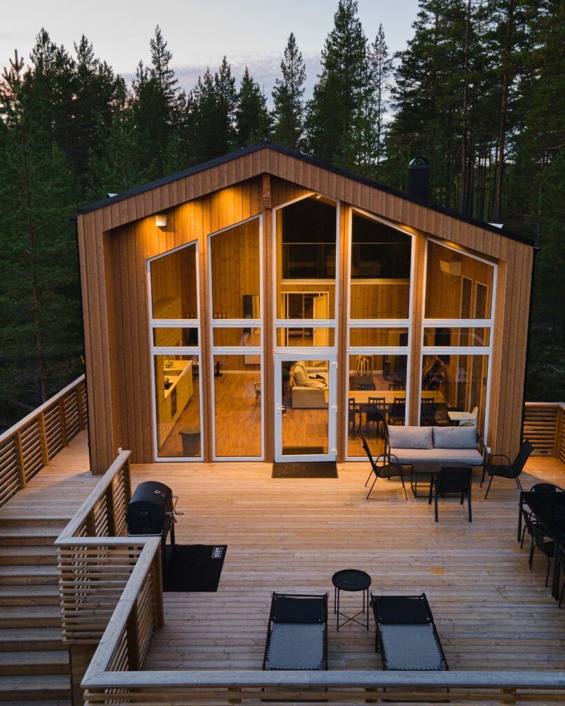 Här kan du uppleva finnskogen på nära håll i ett av de fem stugorna med extra guldkant. Alla stugor har varsin bastu, spabad och fantastik utsikt. Perfekt för dig som vill koppla av, vandra, basta eller bara vara.