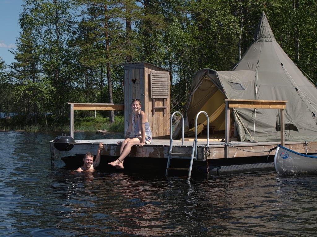 Bo i campingtält på en flotte mitt ute på en sjö och vakna till fågelkvitter ute i naturen. Här kan du också paddla kanot ut till den obebodda ön Getön och bo i bekvämt utrustat glampingtält. En unik upplevelse för den äventyrliga.